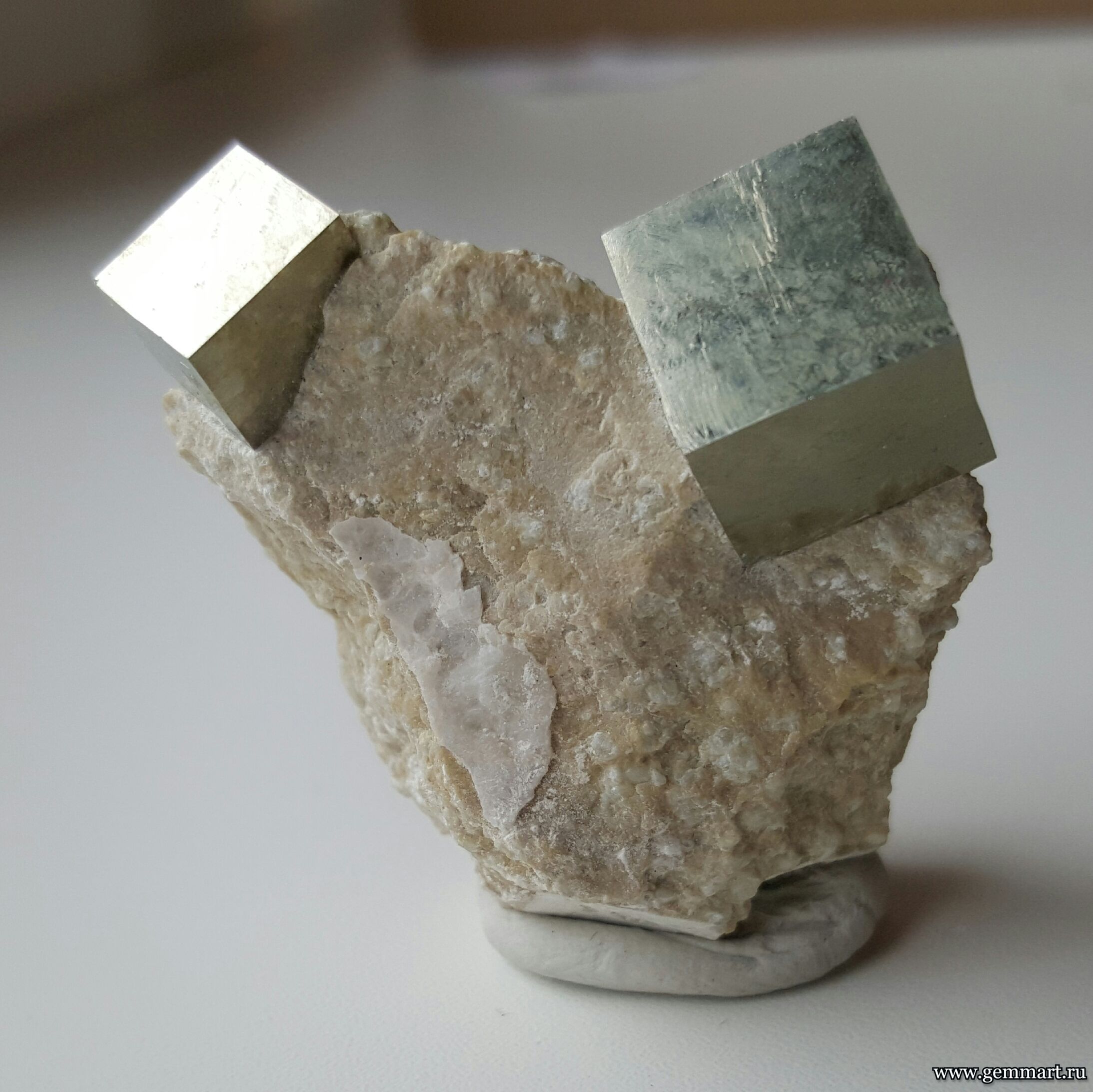 Вес Размер 47*39*21мм Описание Пирит на породе. Месторождение Navajun, La Rioja, Spain. Формат коллекции Миниатюра / Miniature - от 10 до 60мм -