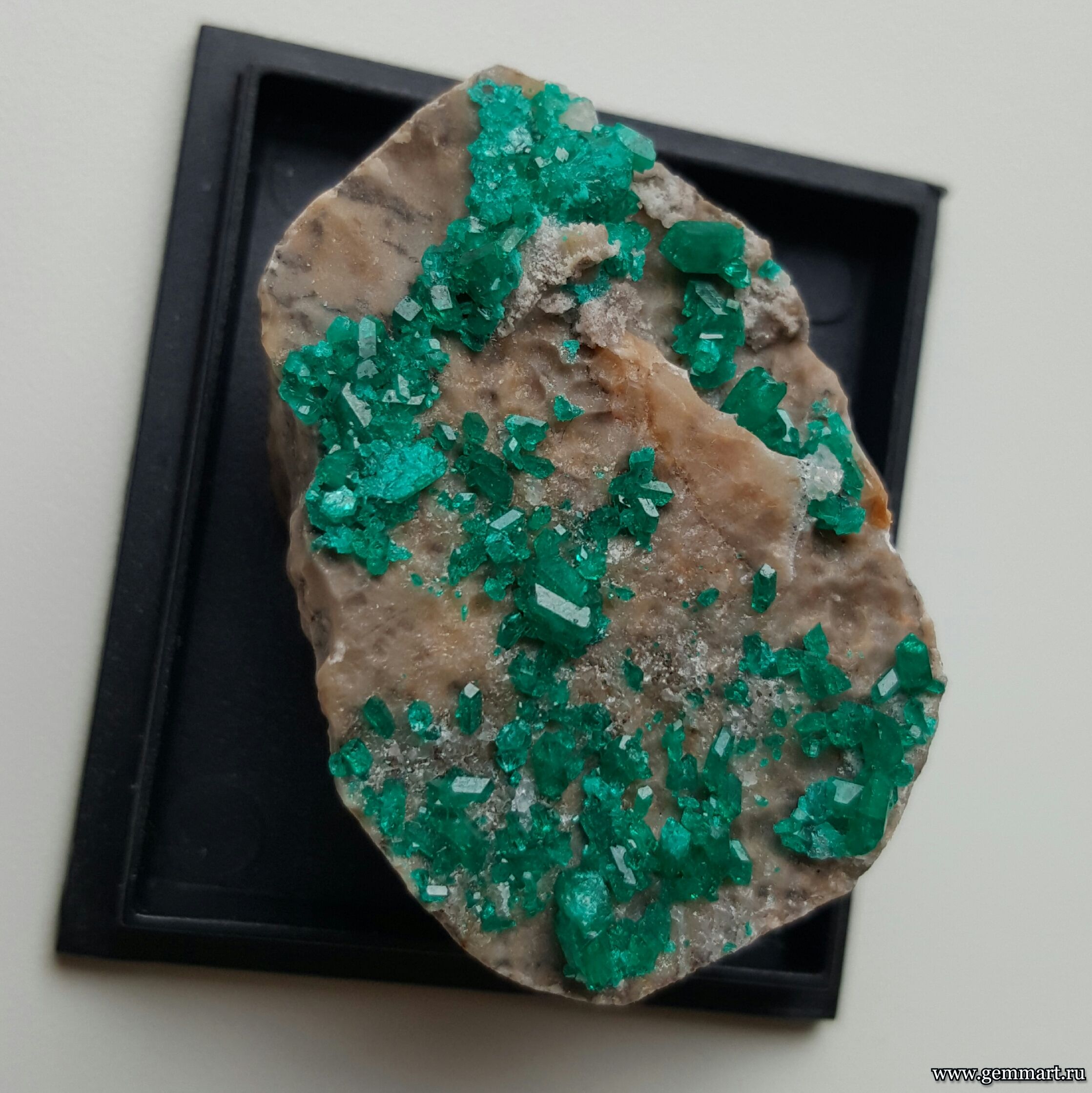 Размер 36*33*15 Вес Описание Диоптаз (Аширит) Месторождение м-е Алтын-Тюбе, Карагандинская область, Казахстан. Формат коллекции : Миниатюра / Miniature - от 10 до 60мм -