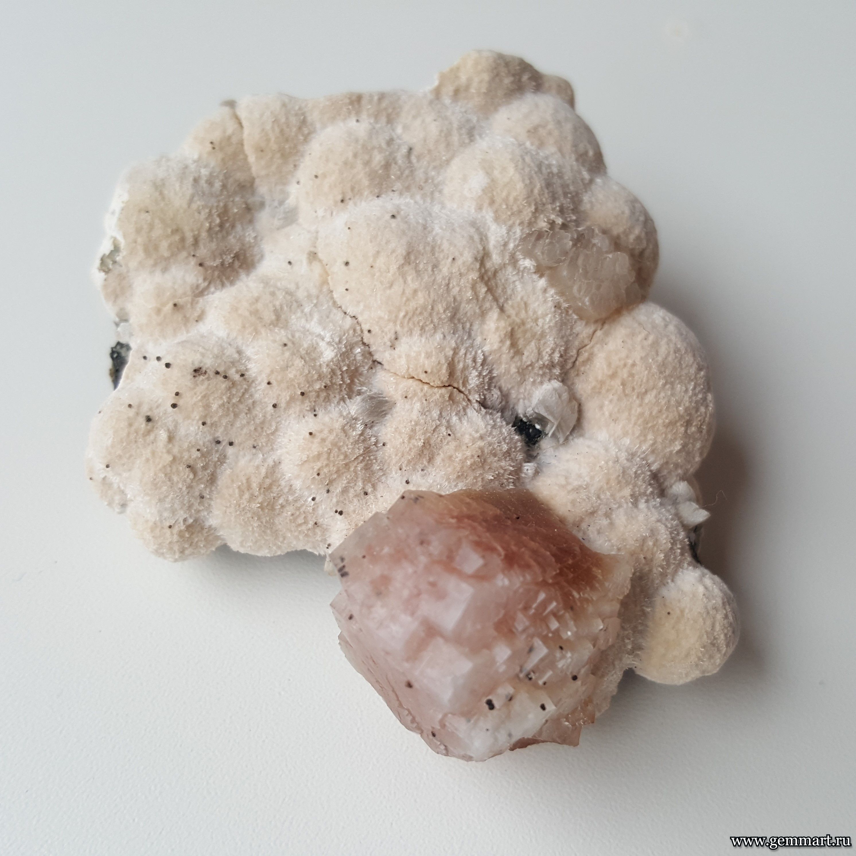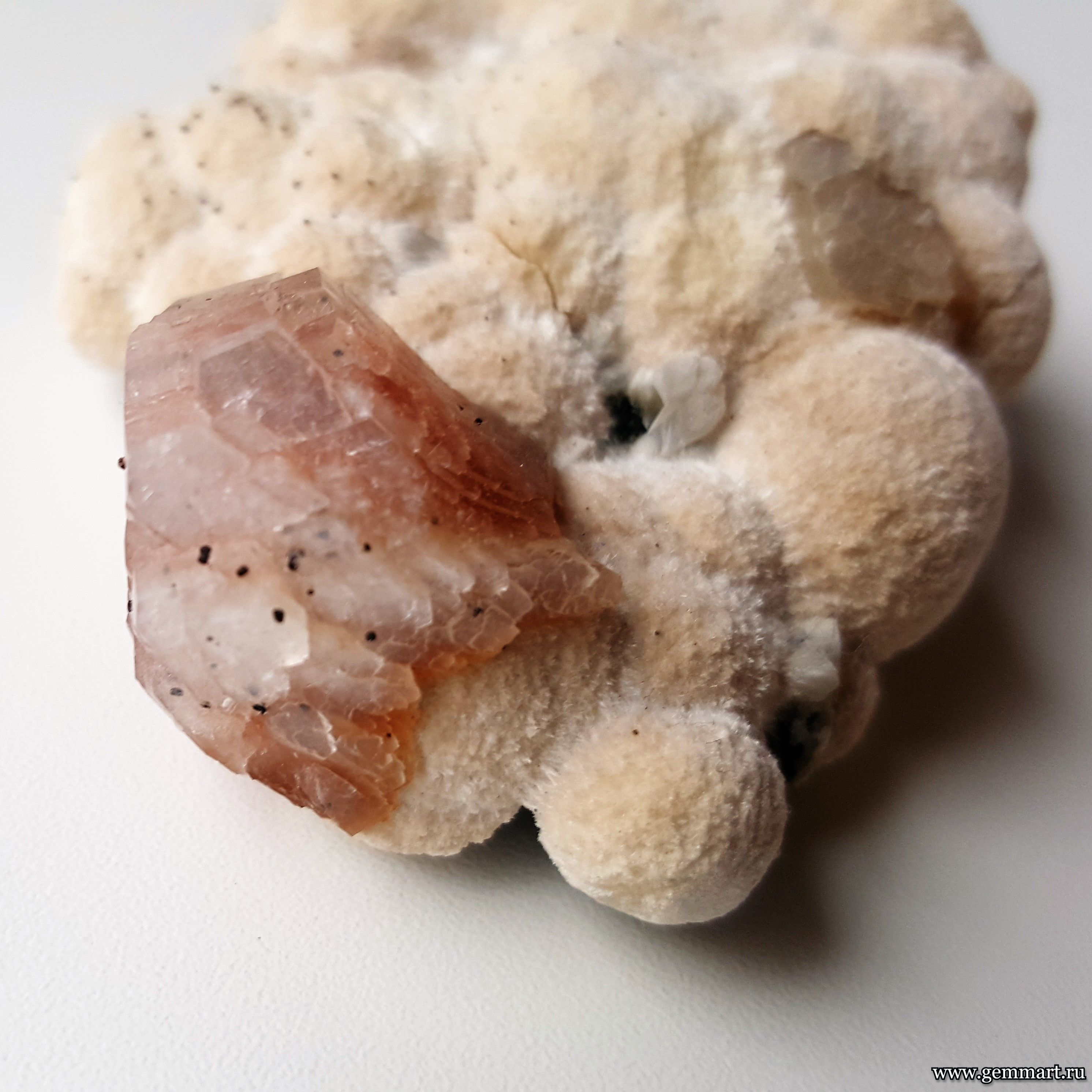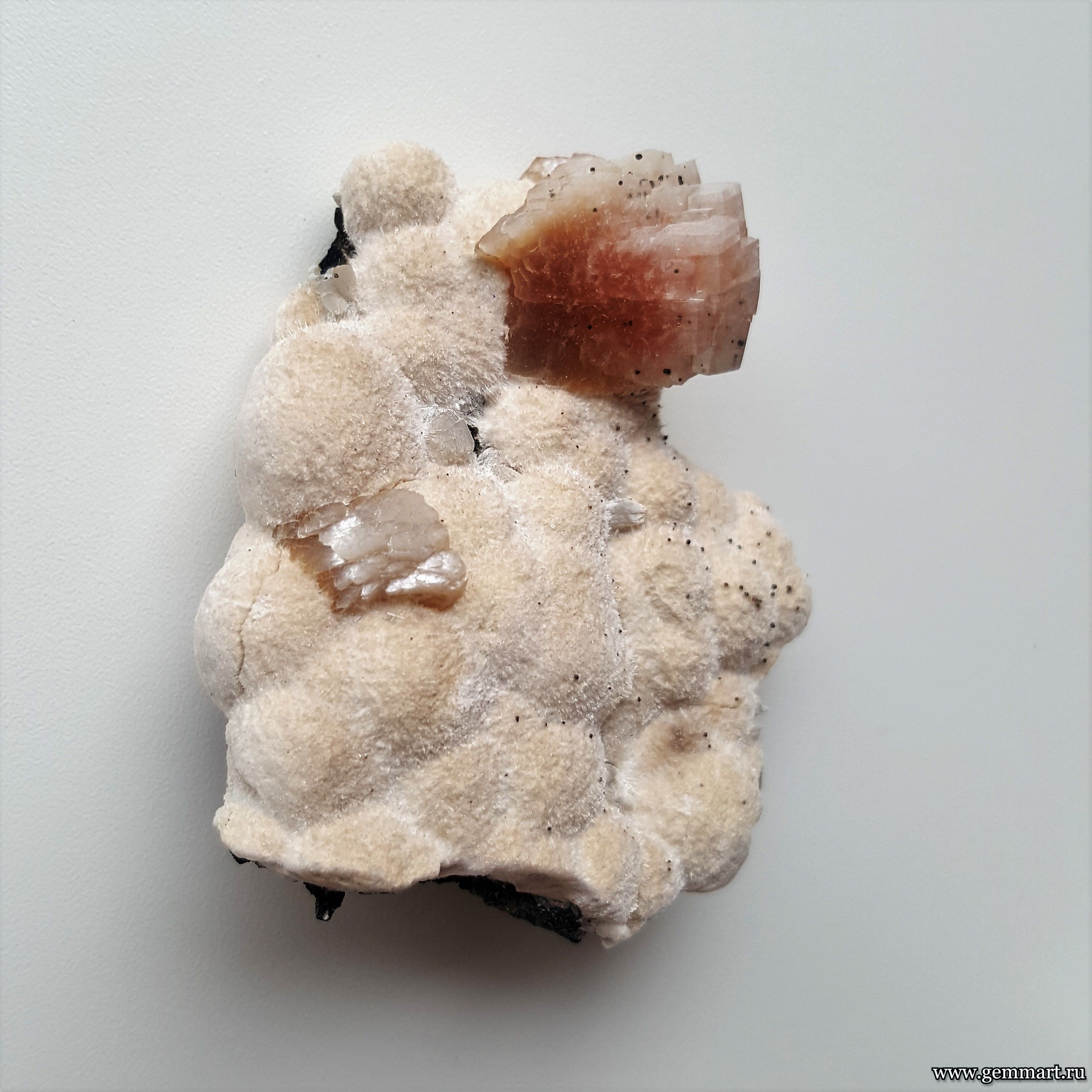 Размер 58*50*22 мм Вес 48г Описание Гейландит Месторождение Река Амудиха, Эвенкия, Красноярский край, Средняя Сибирь, Россия Формат коллекции : Миниатюра / Miniature - от 10 до 60мм -