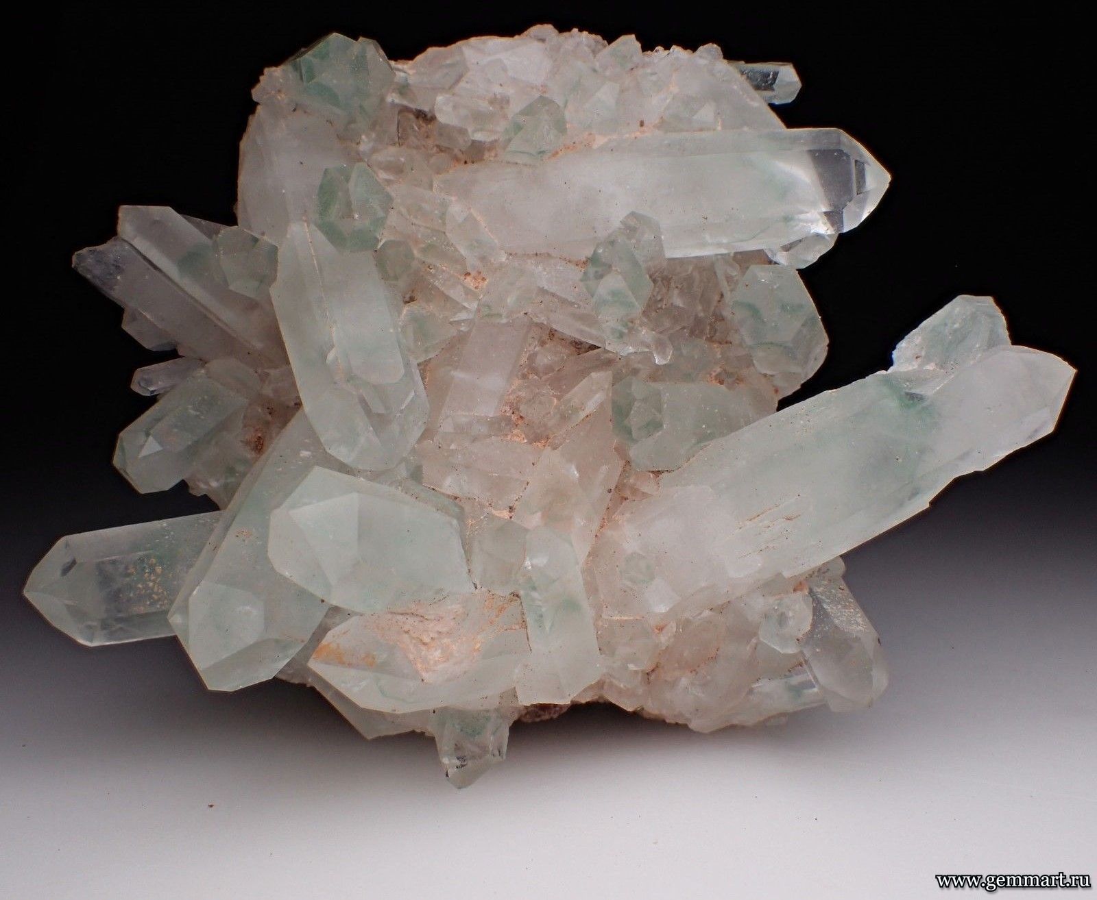 Вес 245г Размер 99*81*51мм Описание Горный хрусталь (разн. кварца), с фантомами, фуксит. Месторождение Мадагаскар Формат коллекции Кабинетный / Cabinet - от 60мм до 150мм -
