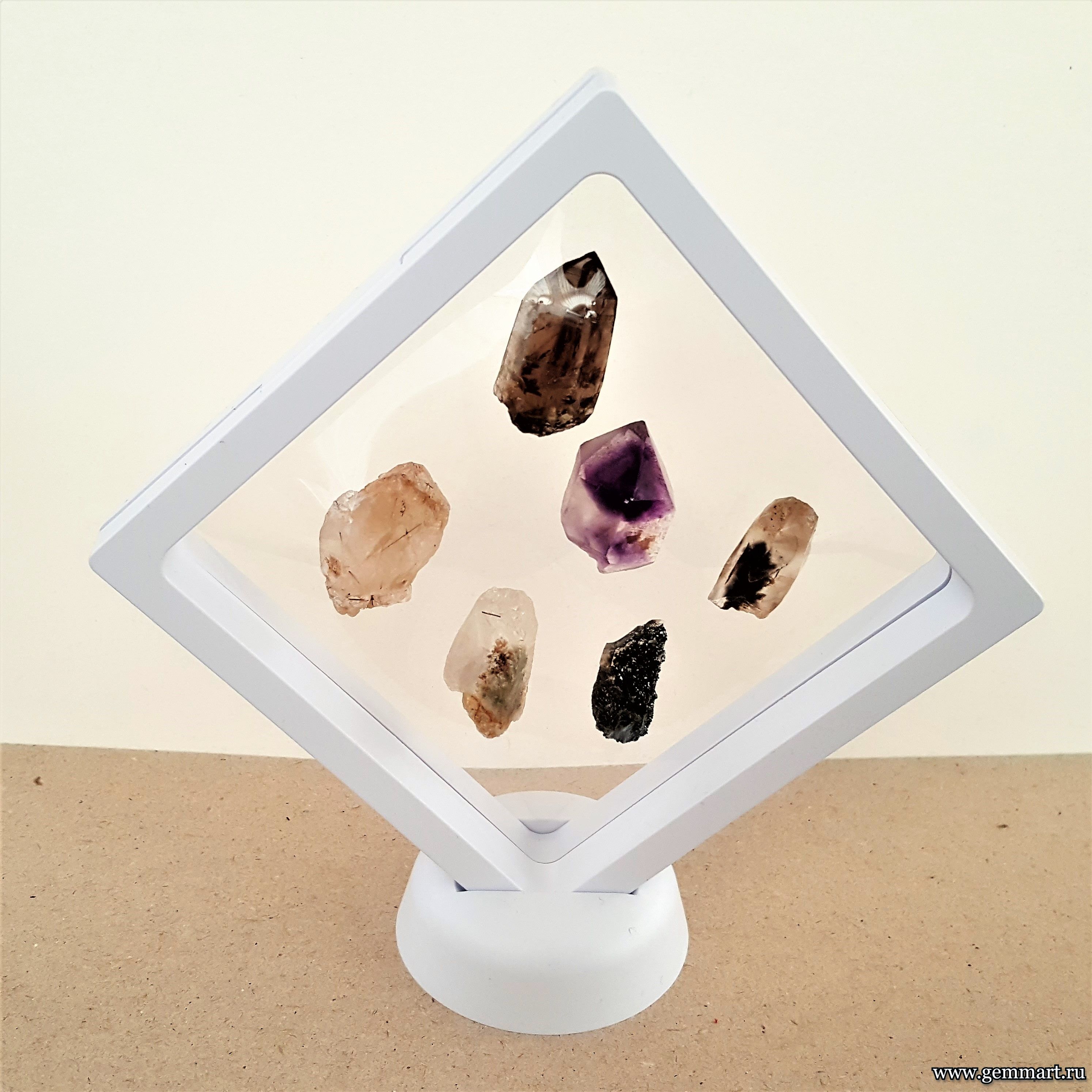 Размер Рамка 110*110*20 подставка 55*15мм, Высота с подставкой 155мм Описание Дисплей выставочный можно использовать для небольших минералогических образцов -