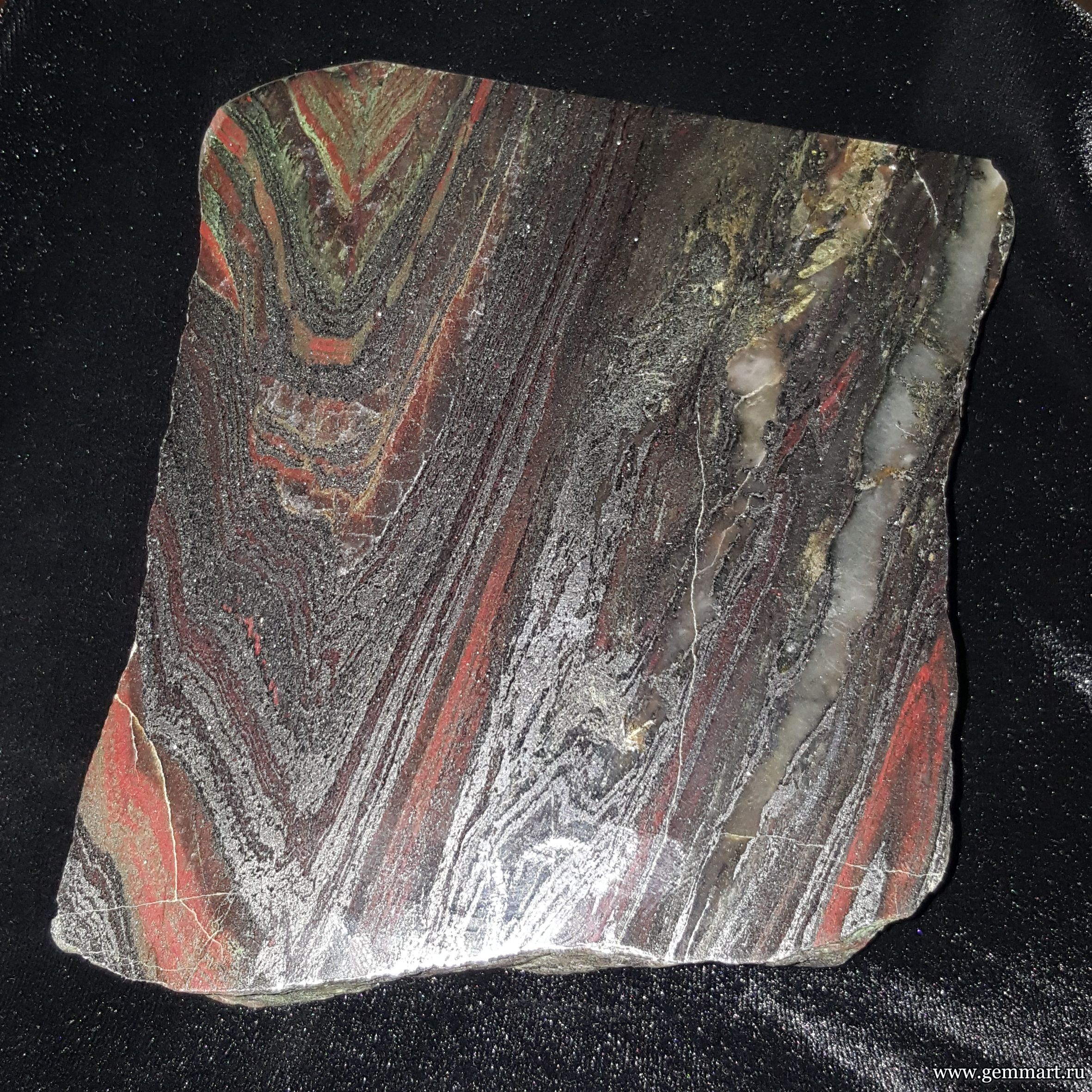Размер 150*130*30мм Вес 1059г Описание Джеспилит — полированный срез Месторождение Лебединское (Fe) Месторождение , Белгородская область, Россия Формат коллекции : Музейный / Museum - от 150мм -