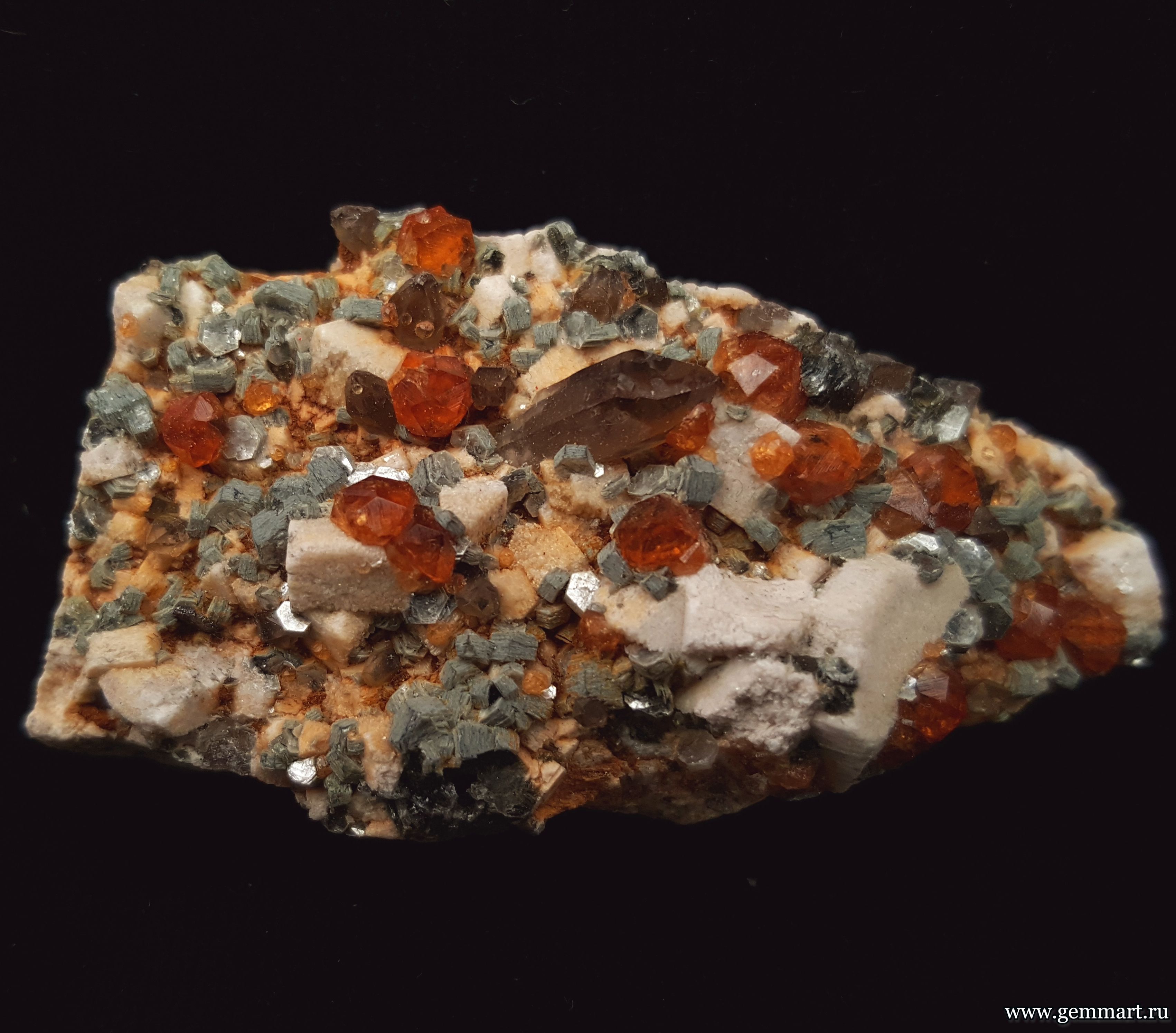 Гранат. Дымчатый кварц, слюда на микроклине №3/12