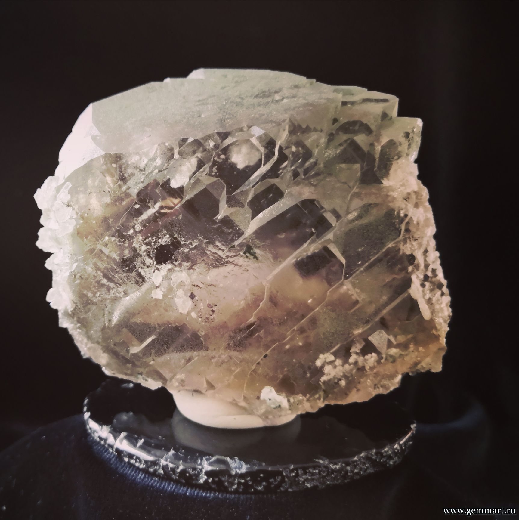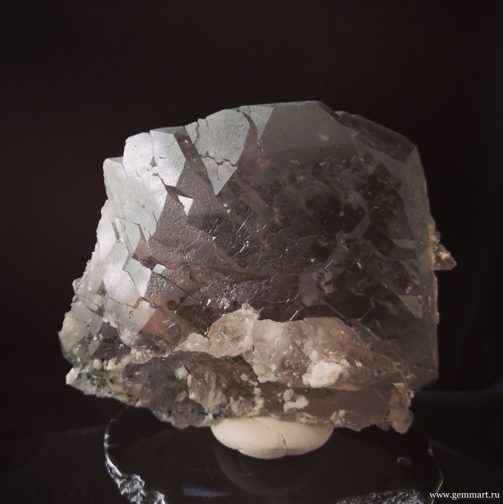 | Описание | Очень редкий кварц ("крученник" или "gwindel') дымчатый, со слабо заметной хлоритовой присыпкой. |