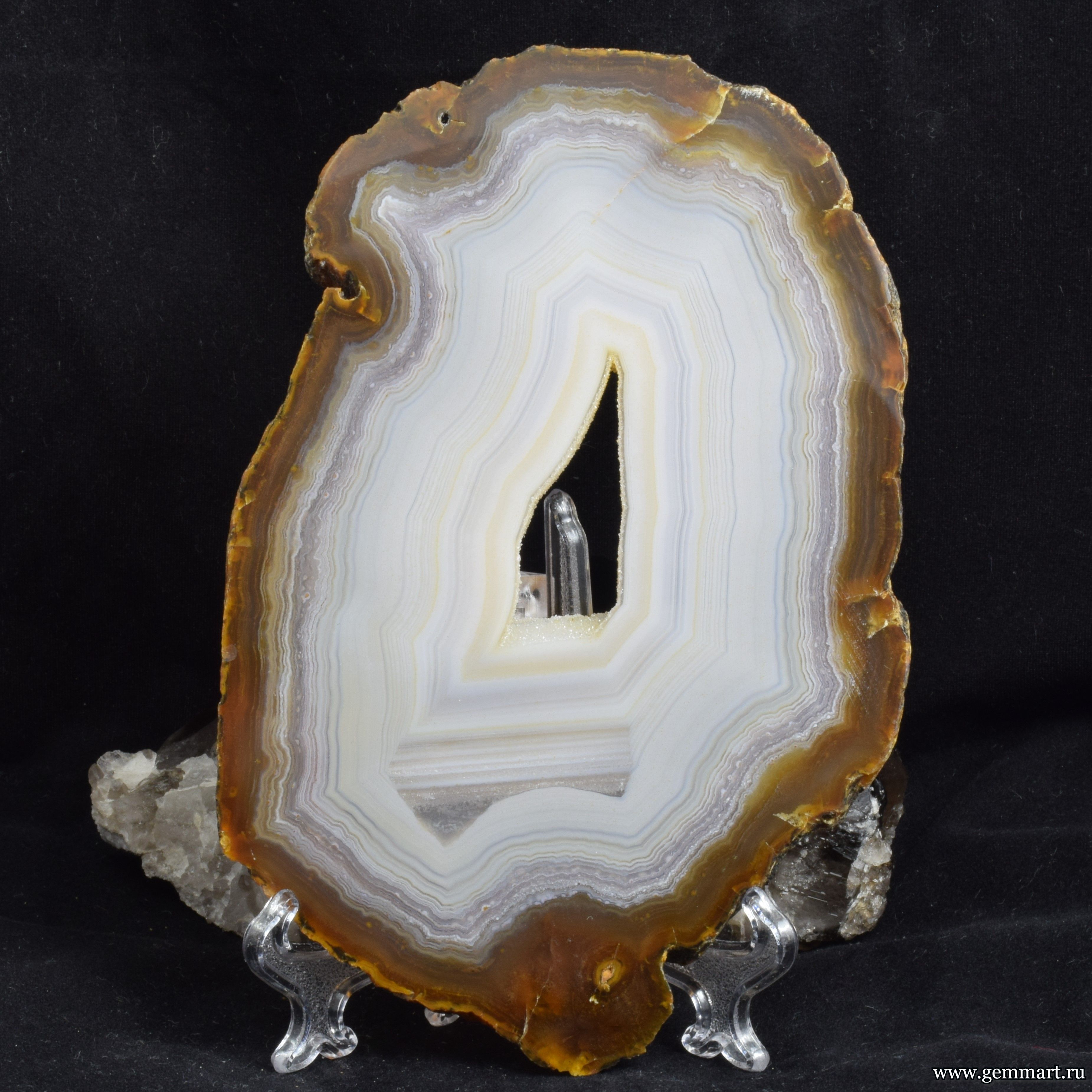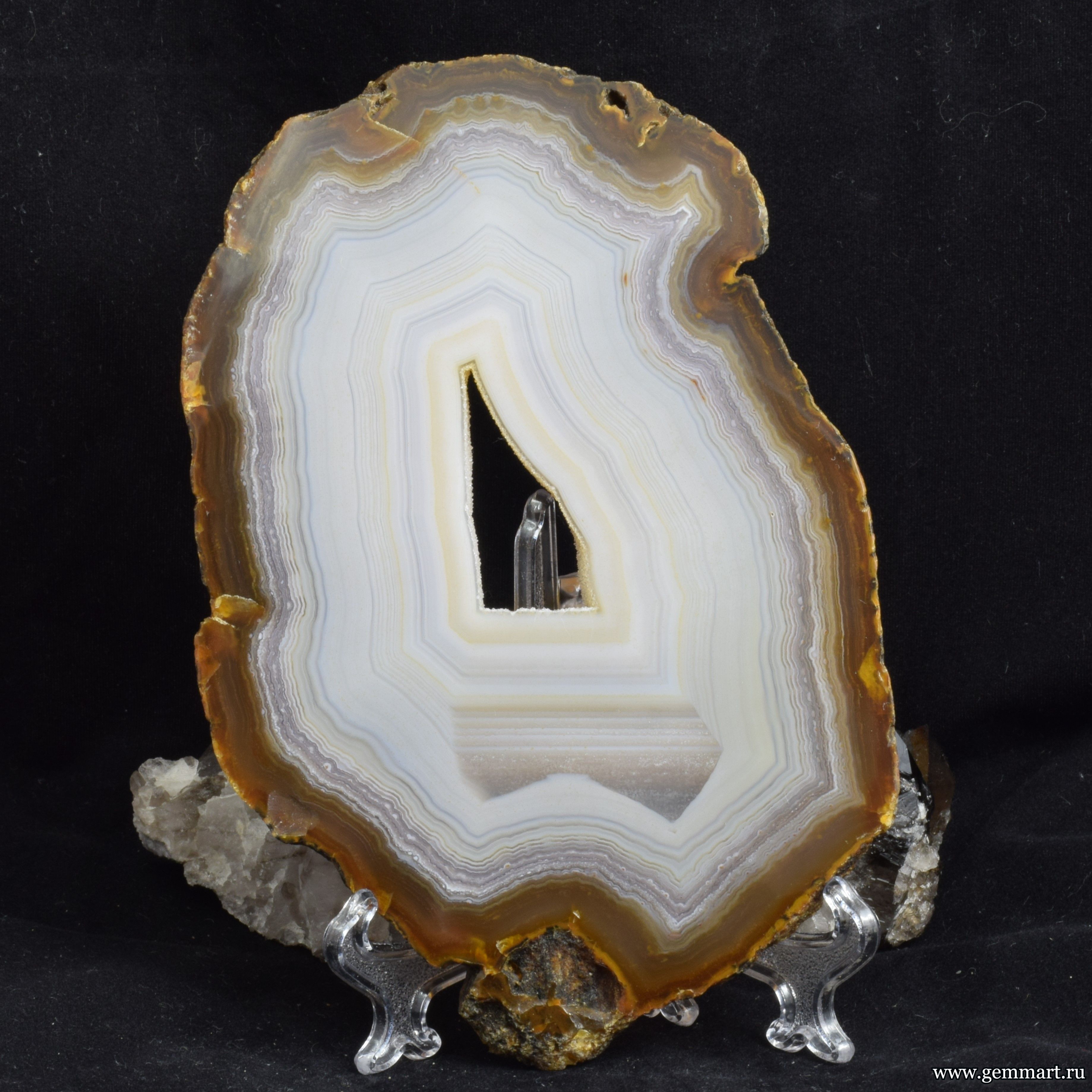 | Описание | Агат с ониксовым агатом - полированный спил |