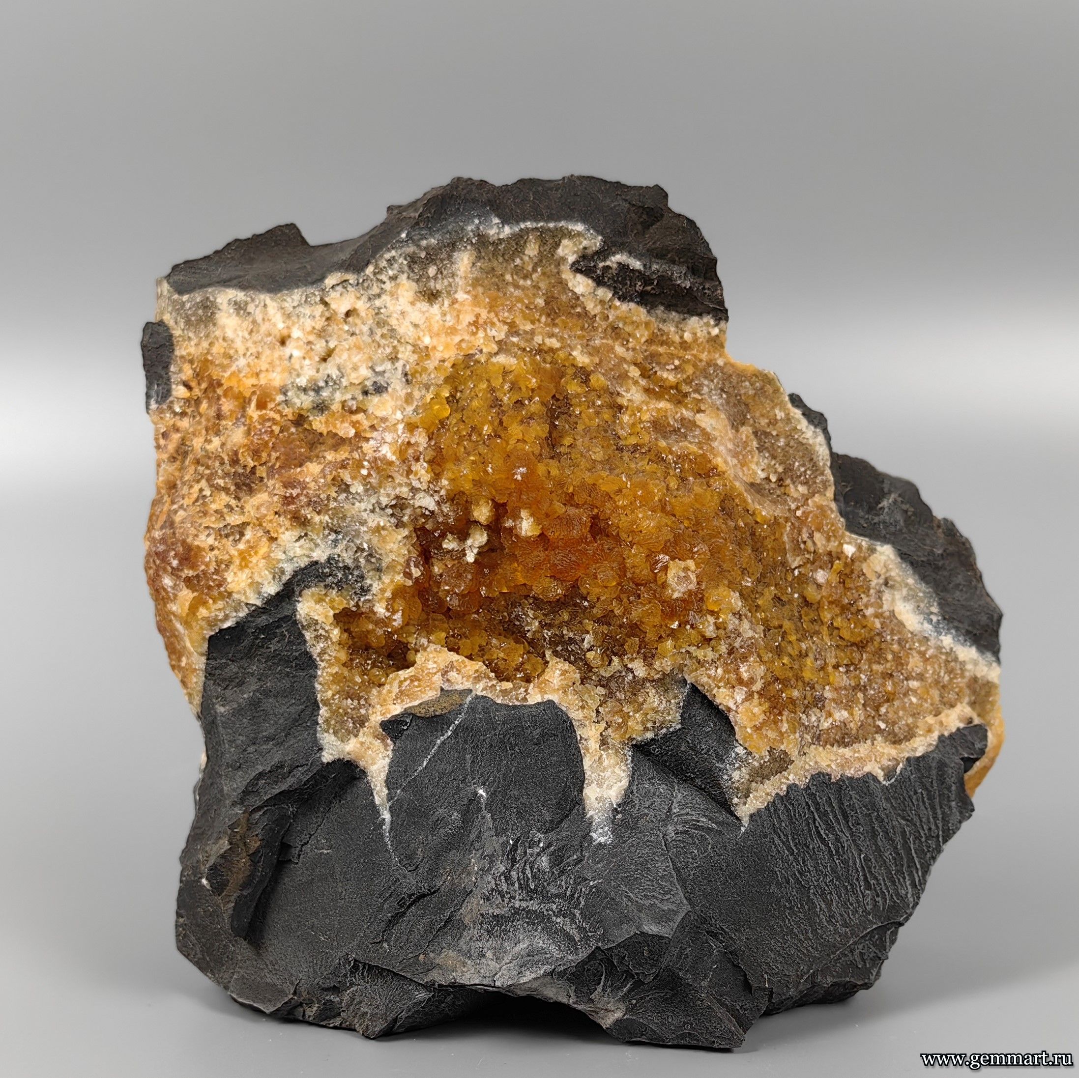 Размер 180*160*100мм. Вес 2,79кг. Описание Двухсторонний фрагмент септарии с медовым кальцитом. Месторождение Северный Кавказ. Дагестан. Россия Формат коллекции : Музейный / Museum - от 150мм -