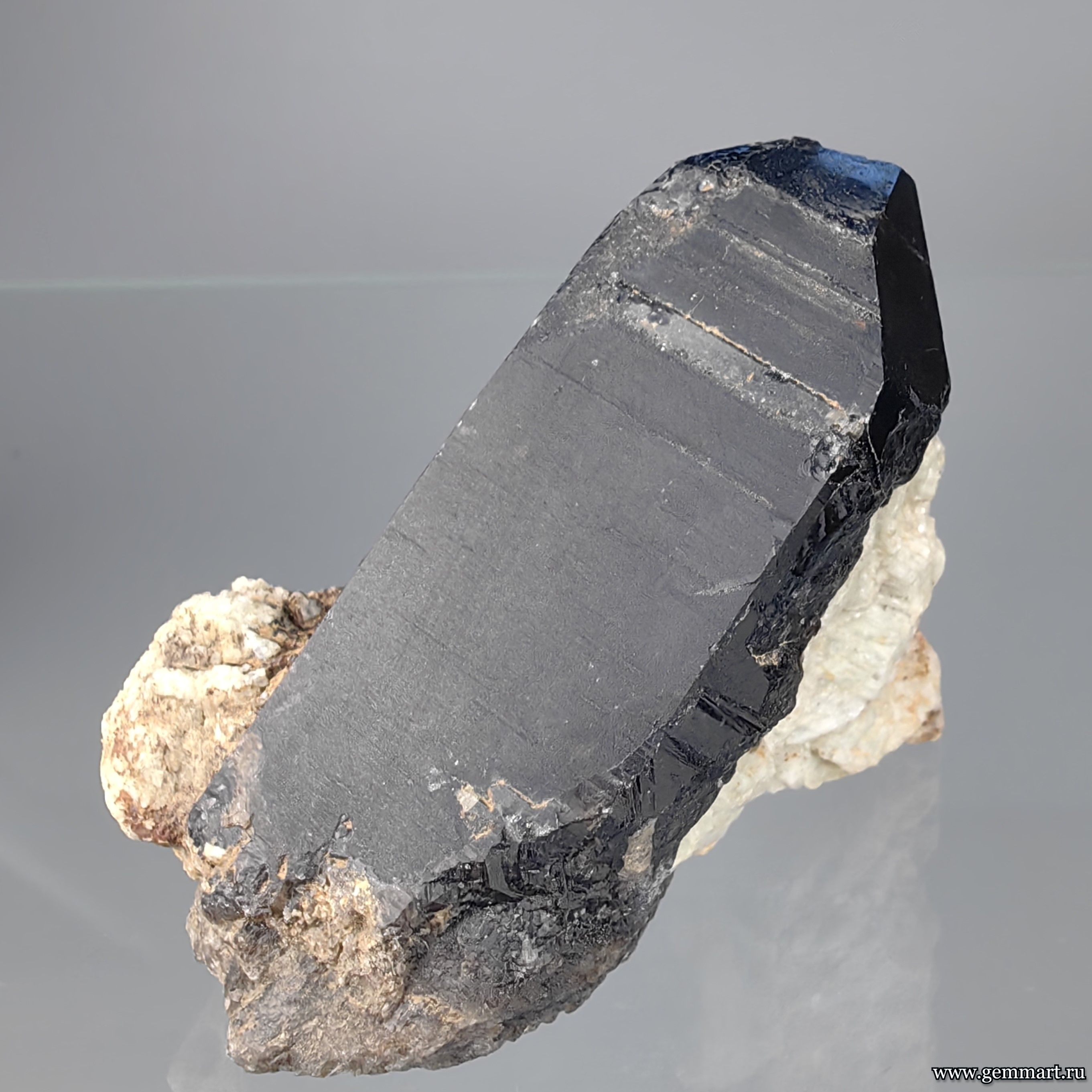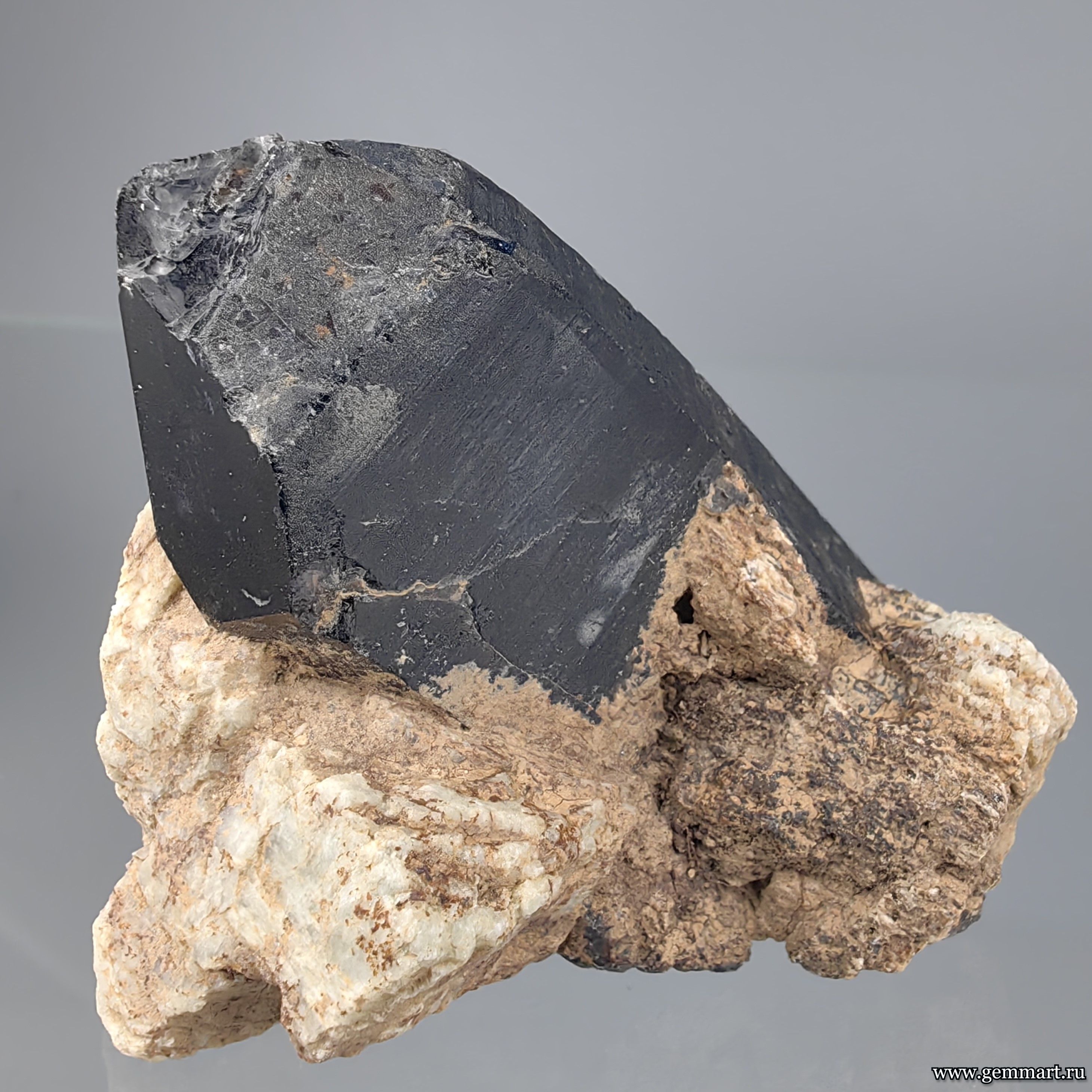 | Описание | Морион (разн. кврарца), кристалл на полевом шпате. |