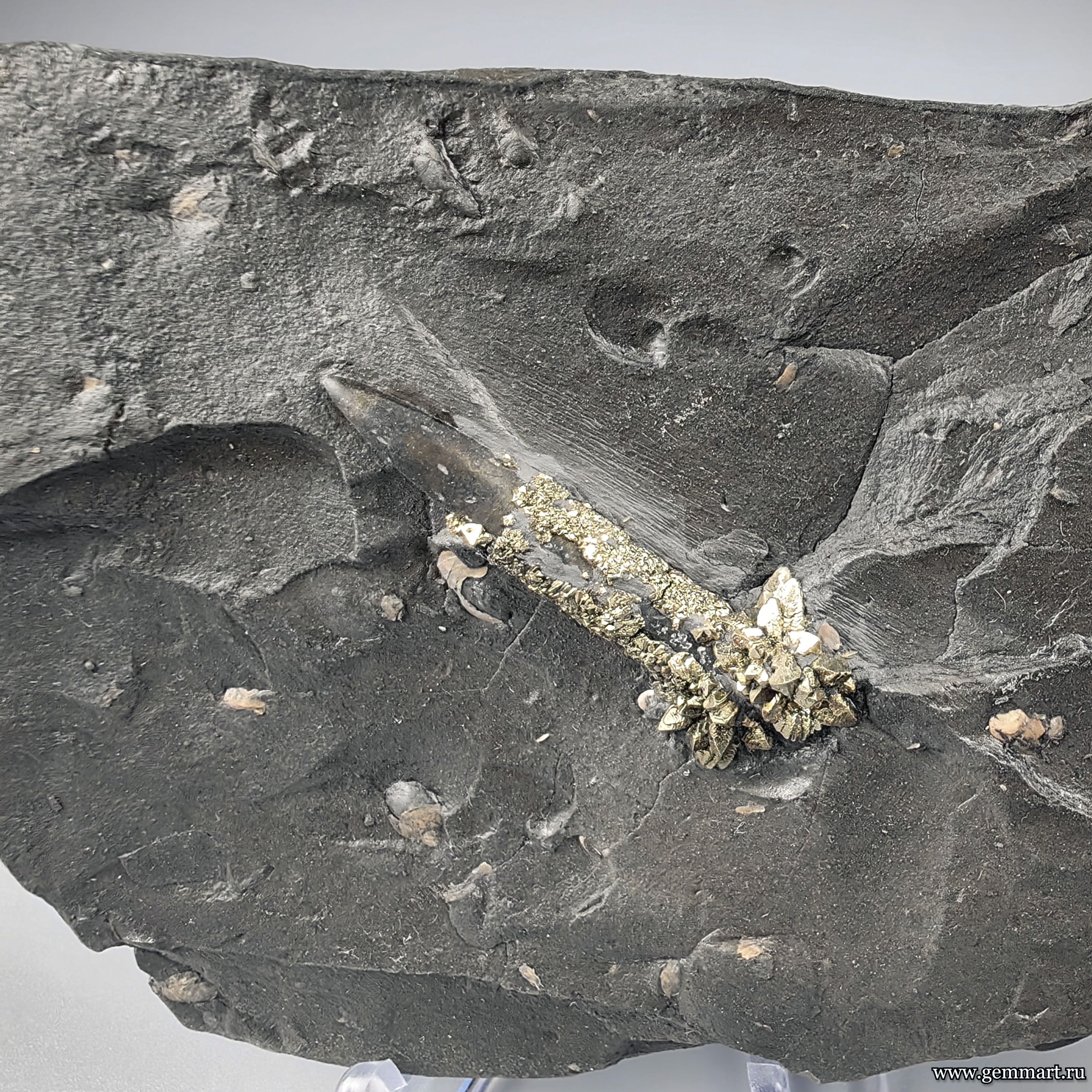 Пирит на белемните во вмещающей породе. КЧР. Россия. 135*75*15мм