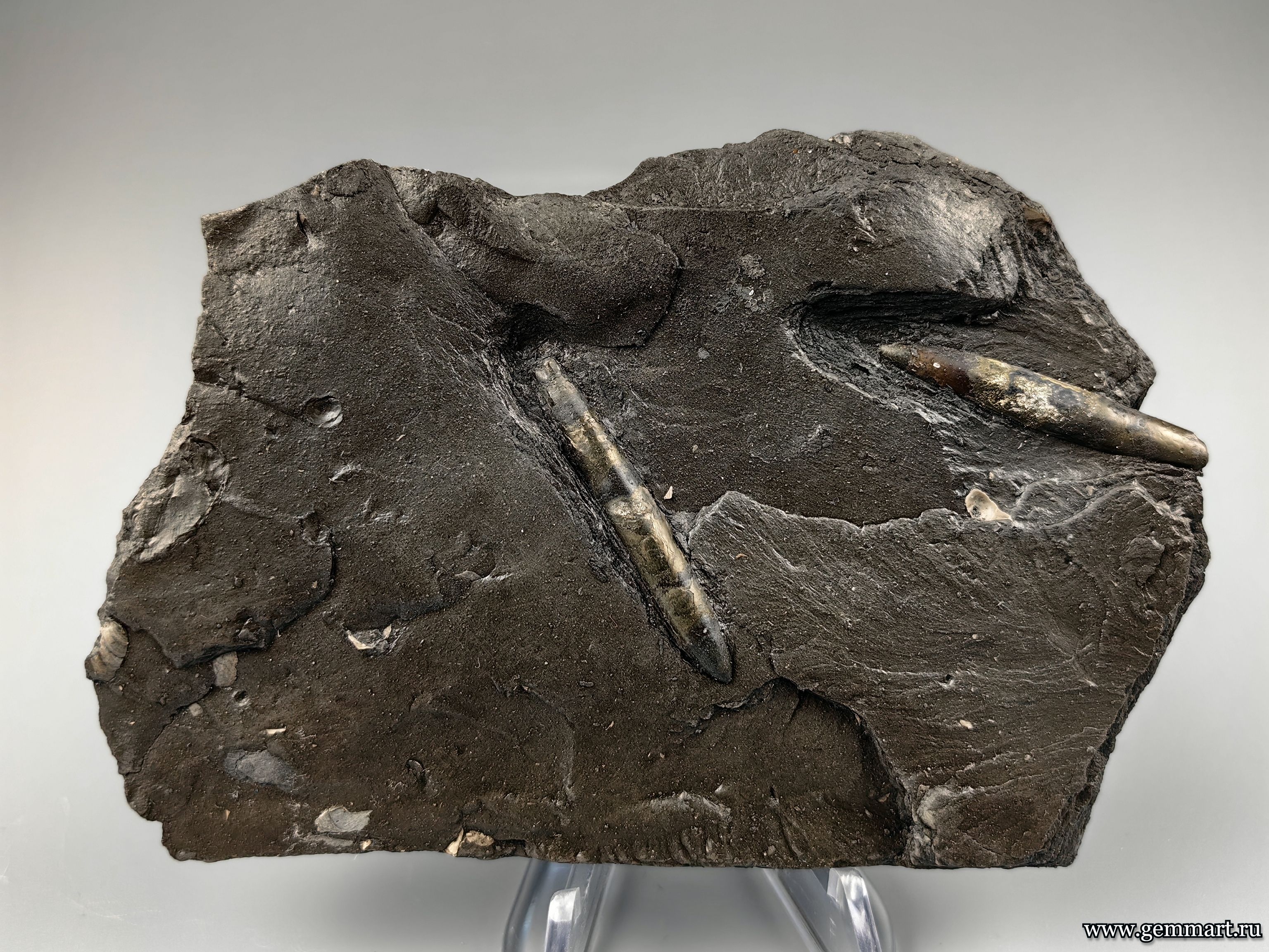 Пирит, замещение по белемниту во вмещающей породе. КЧР. Россия. 125*81*14мм