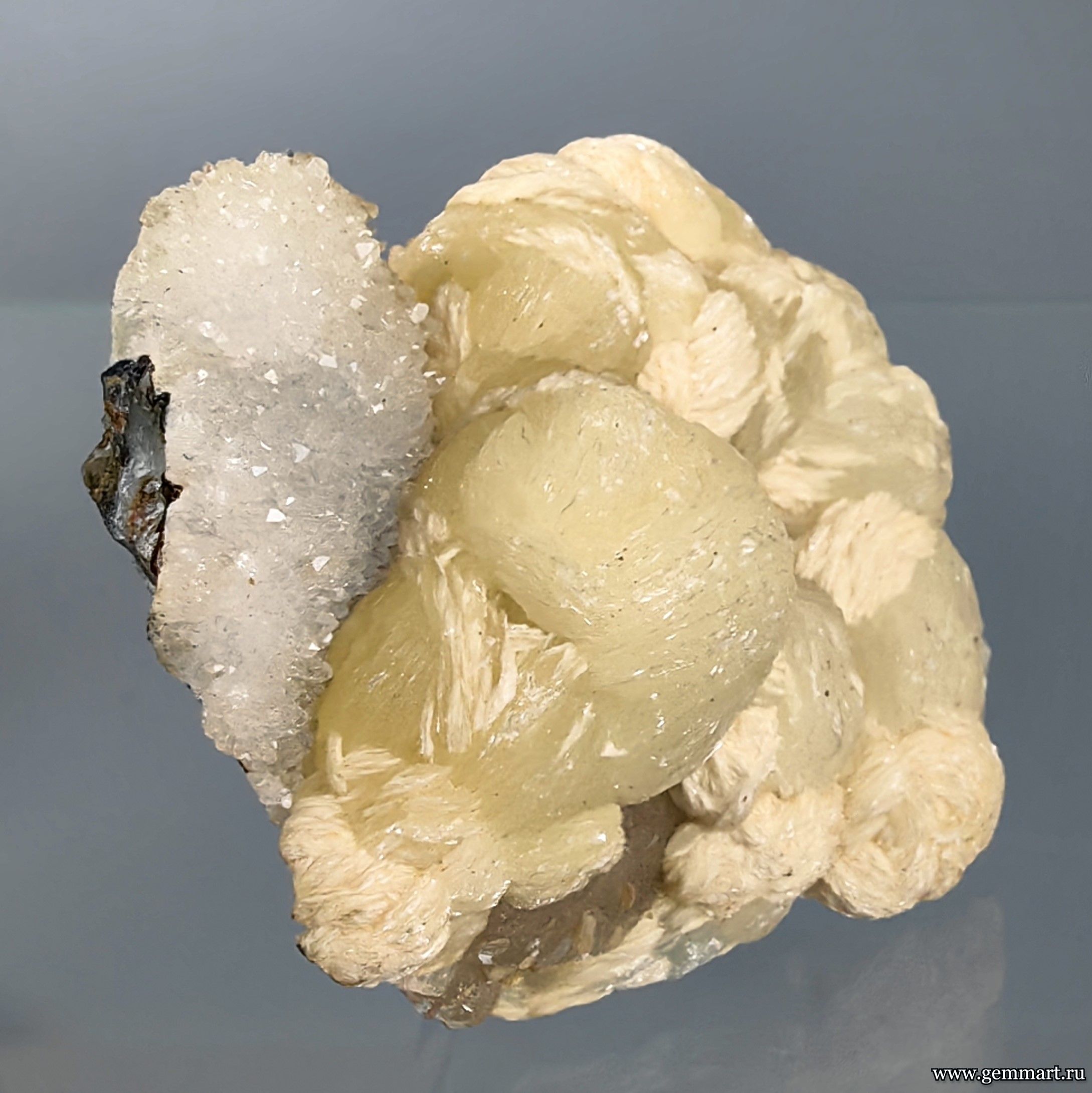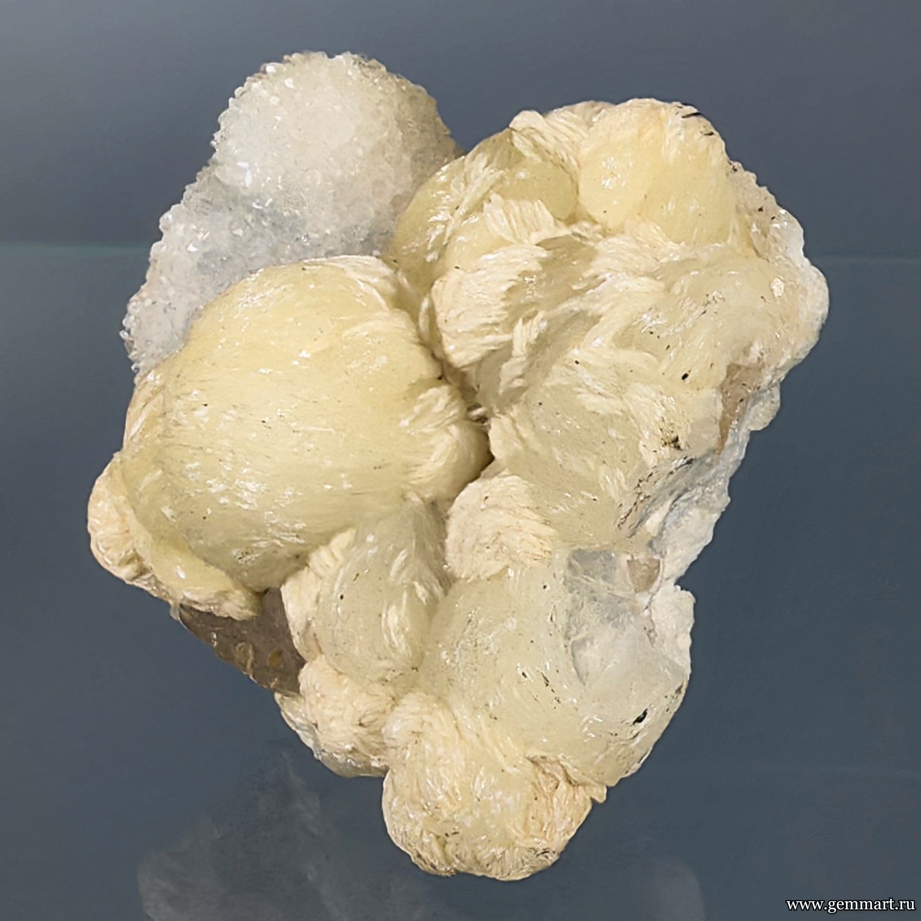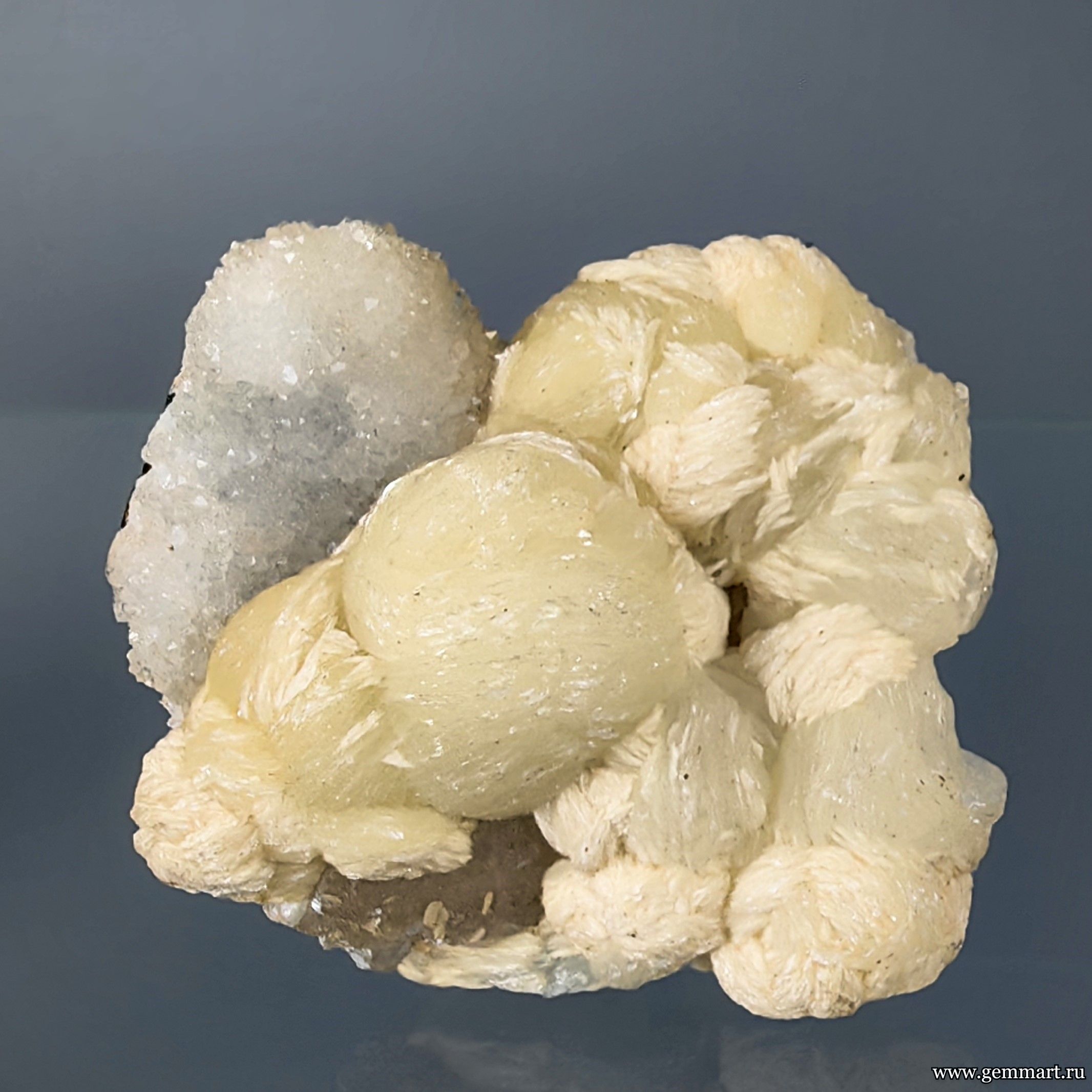 Стильбит двух генераций и кальцит на кварце. 55*52*30мм