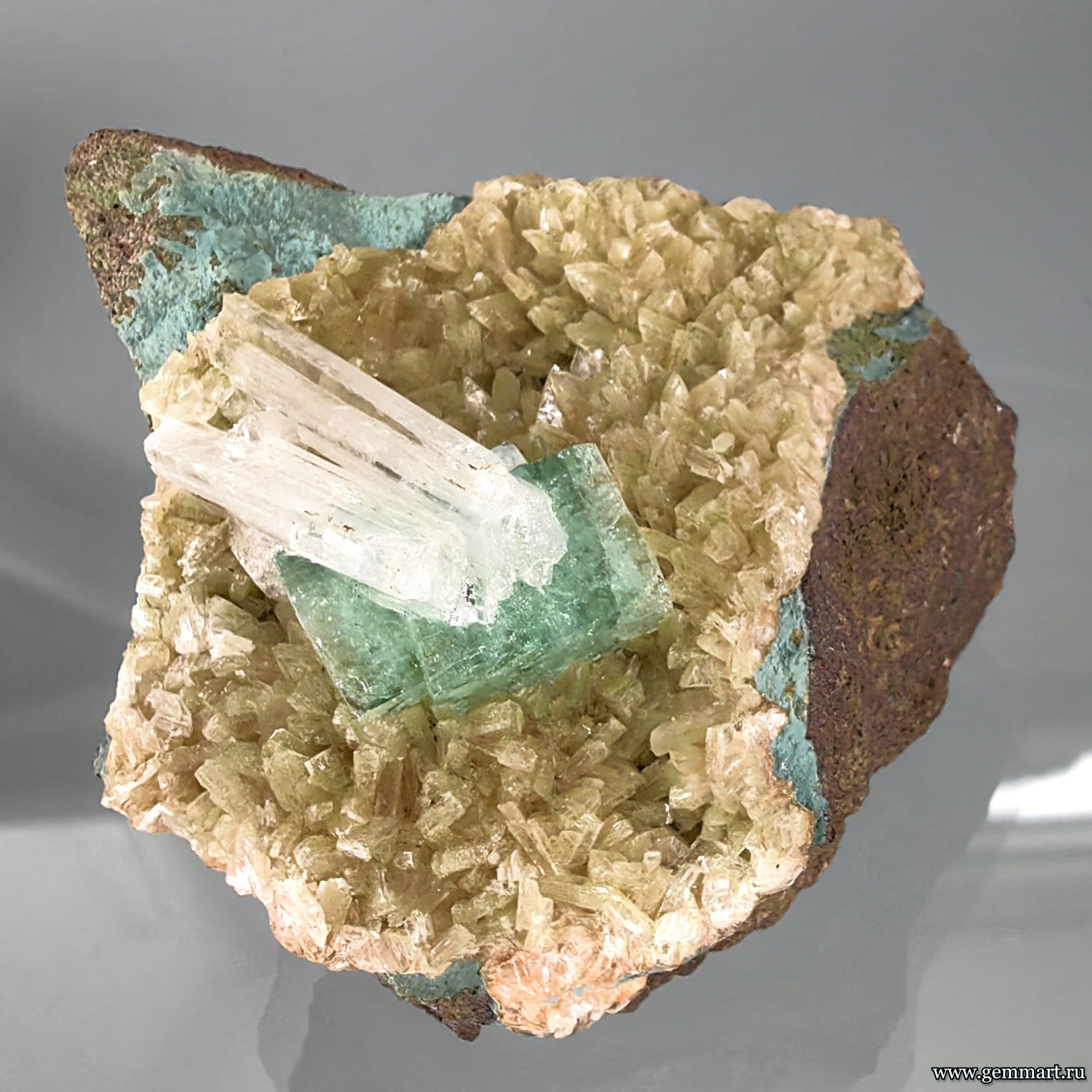 Вес 60г Размер 50*40*30мм Описание Апофиллит зеленый, стильбит, сколецит (?). Месторождение India Формат коллекции Миниатюра / Miniature - от 10 до 60мм -
