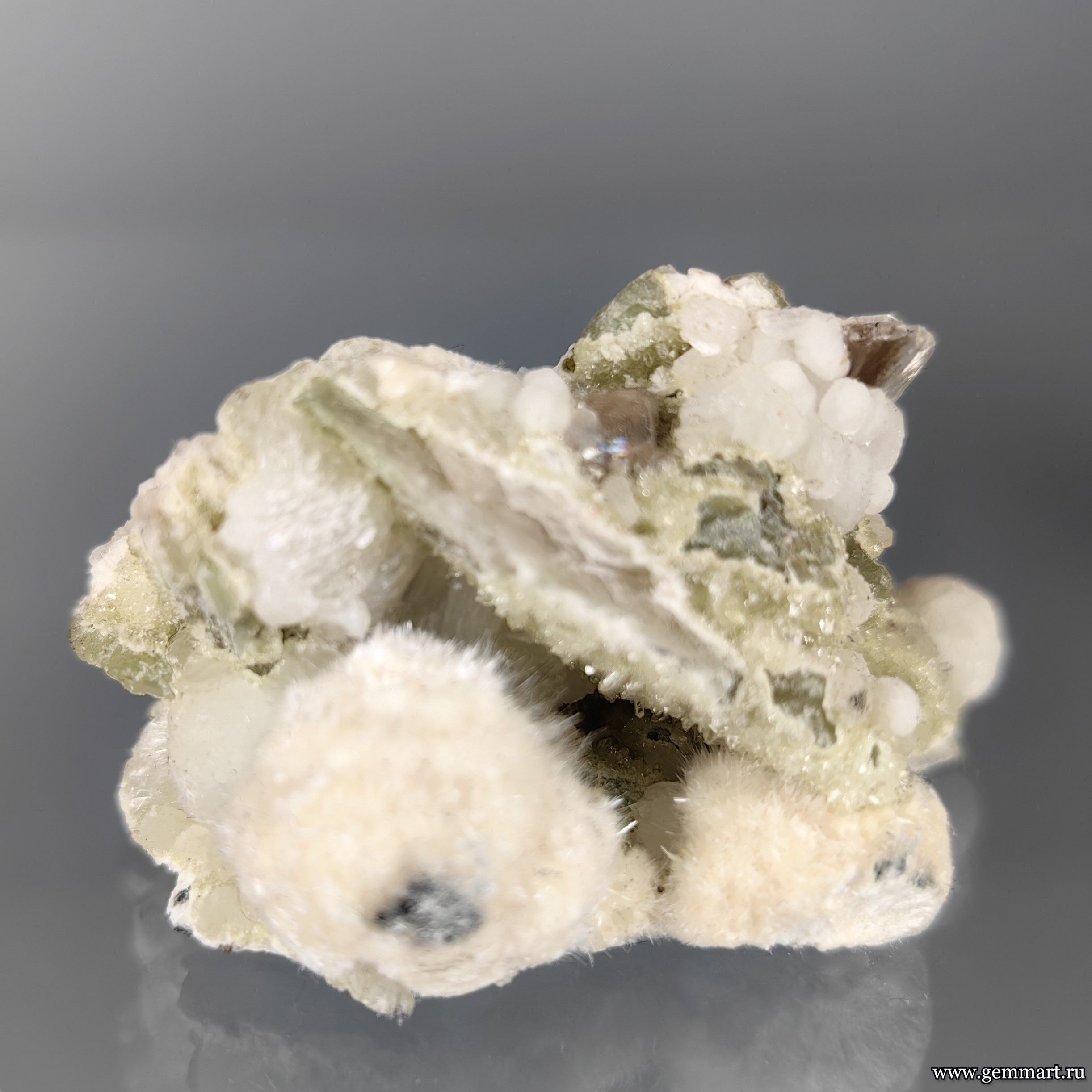 Вес 60г Размер 55*45*30мм Описание Окенит, стильбит, кальцит. Месторождение India Формат коллекции Миниатюра / Miniature - от 10 до 60мм -