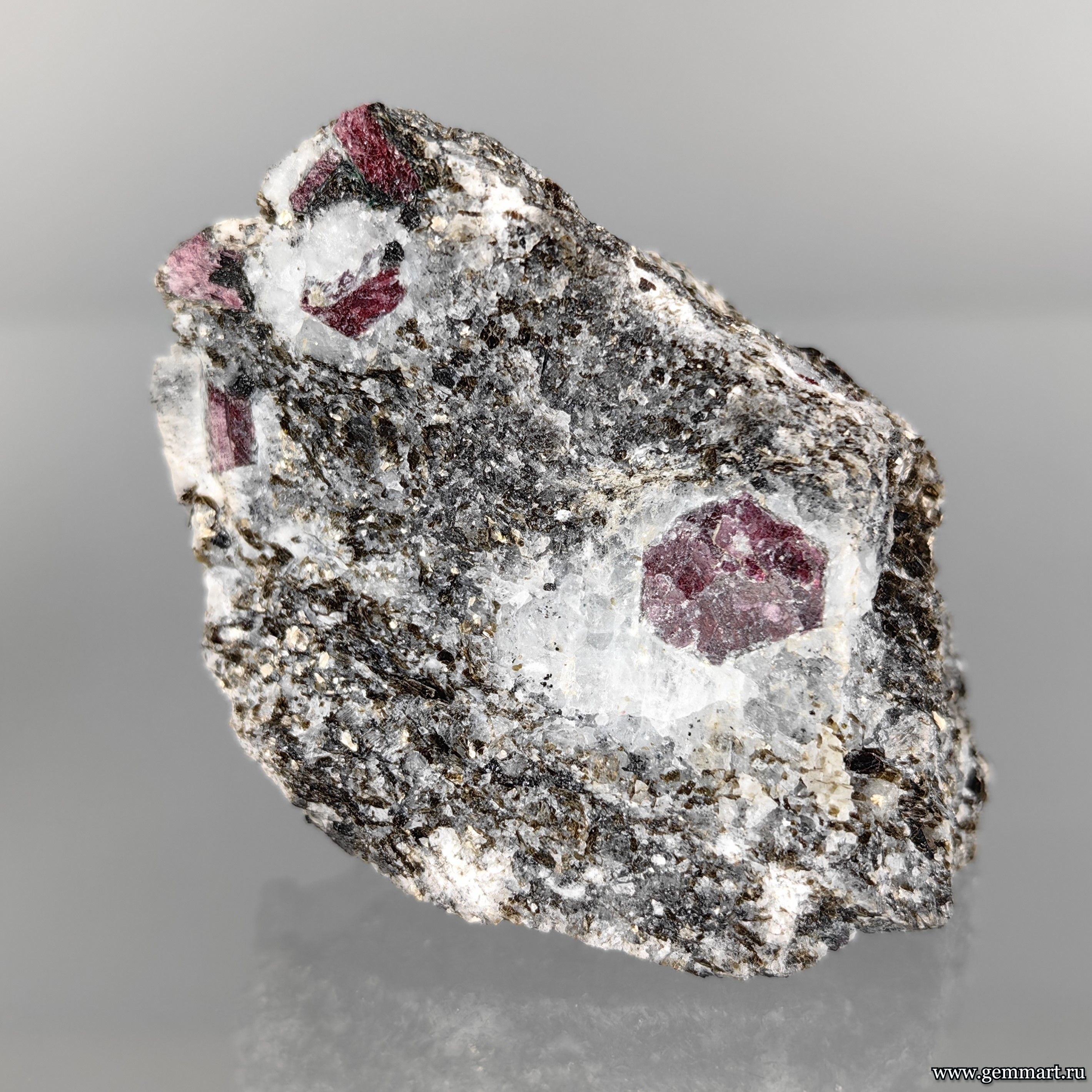 | Описание | Корунд, фрагмент кристалла в слюдите. Редкость! |