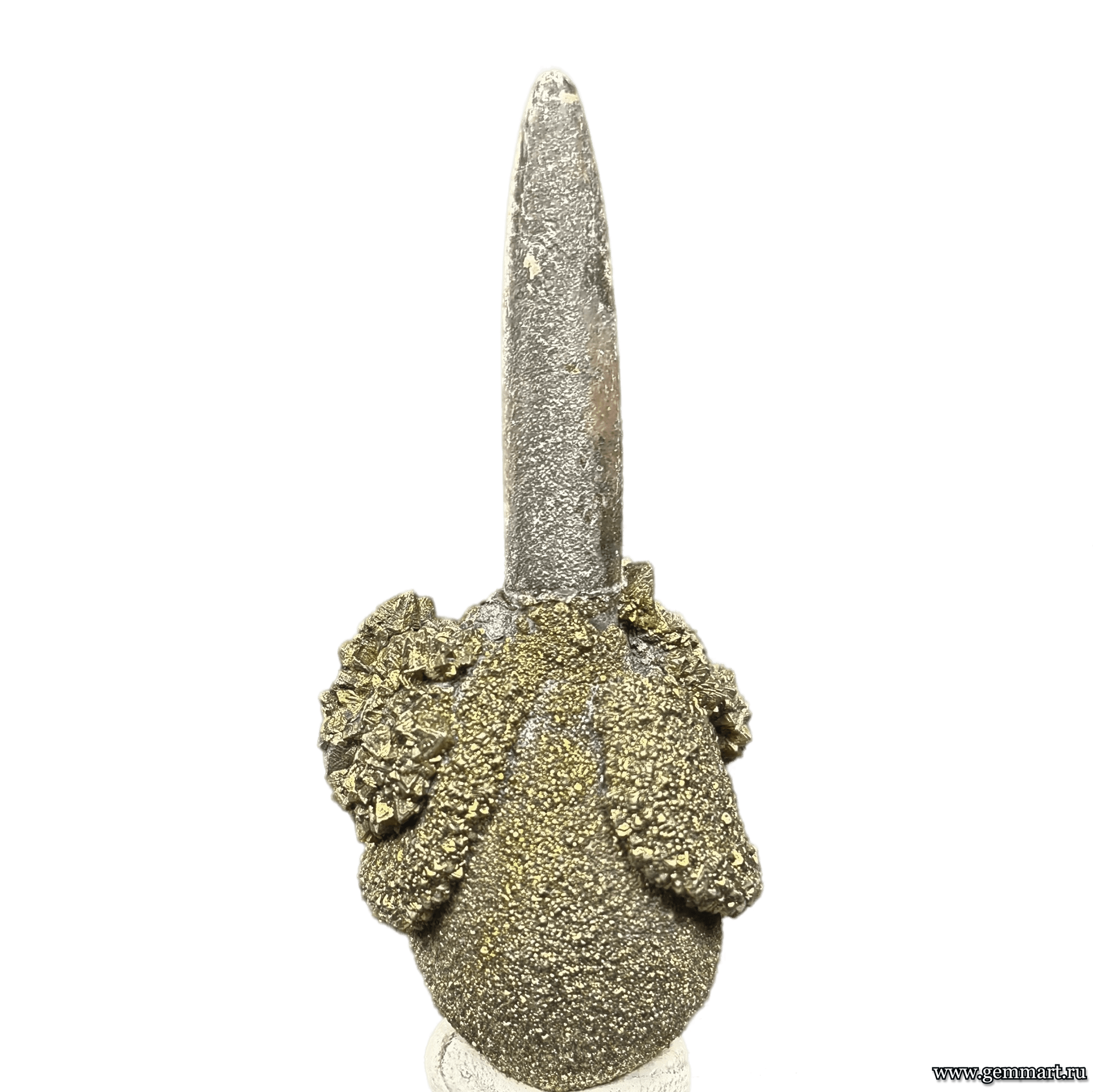 Вес Размер 40*15*15мм Описание Необычная, очень эстетичная конкреция пирита на белемните. Месторождение р. Джеганас, КЧР, Северный Кавказ, Россия. Формат коллекции : Миниатюра / Miniature - от 10 до 60мм -